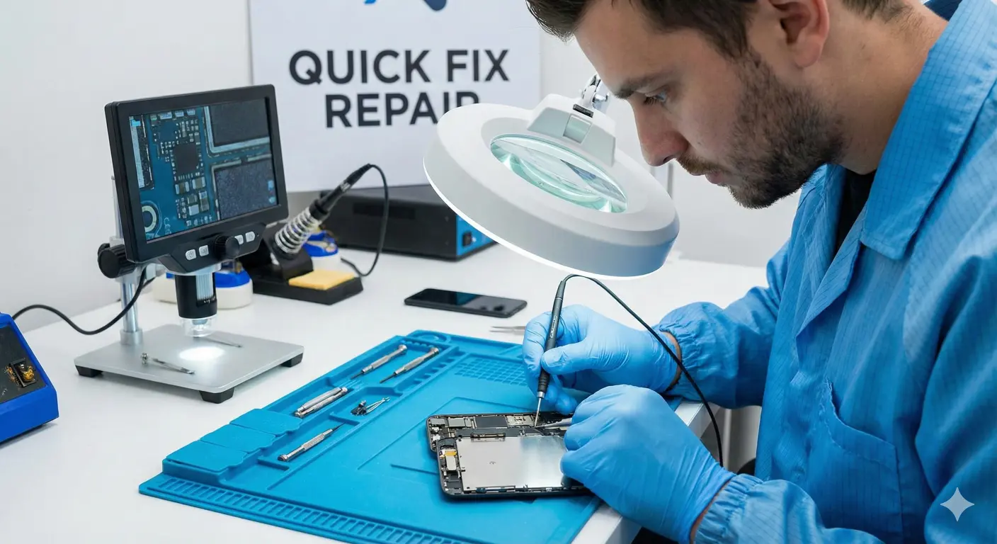 - Device inspection and diagnostics: Technicians check for additional damage before starting the repair.